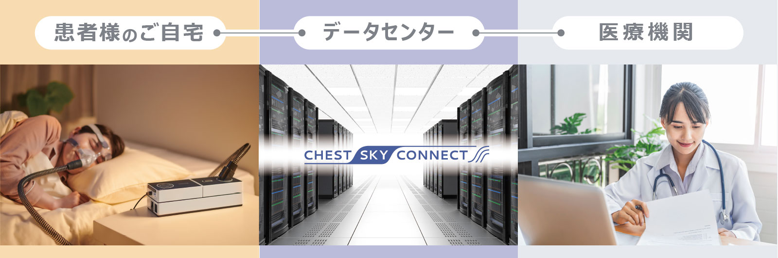 また、当製品は、チェスト社のクラウドサービス「CHESTSKYCONNECT」と連携することにより、医療従事者が患者のデータを遠隔モニタリングすることが可能です。