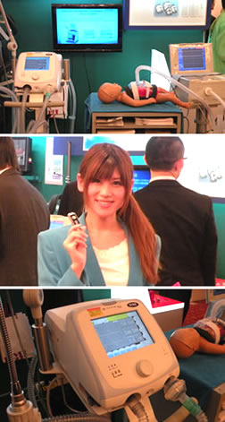 本学会では、新発売のAVEA人工呼吸器、VELA人工呼吸器、陽・陰圧体外式人工呼吸器RTX、フローアナライザPF-300/301VAC、モデル肺の展示およびキャンペーンガールによるメールマガジン“int(イント)”医療情報配信サービスのご案内を行い、多くのお客さまにお立ち寄り・御入会いただき、誠にありがとうございました。