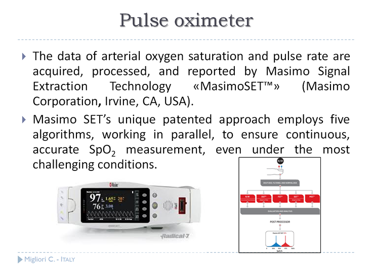 Masimo SETTM によって正確なSpO2データを人工呼吸器に供給している。CLiO2は、1秒毎にSpO2を評価し、FiO2の条件を変更するか否かを判断する。