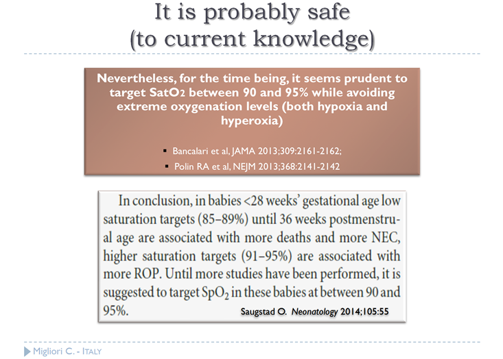 - 酸素の副作用を低減するためには、SpO2を慎重にモニタリングする事が求められ、SpO2を目標範囲内に維持し、SpO2の変動を回避しなければならない。