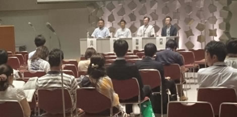 4名の演者の先生方には発表終了後ステージに登壇いただき、総合司会の小谷先生とコーディネーターの岡田先生、更には客席にご参加いただいた聴講者の皆様にも加わっていただき、パネルディスカッションが行われました。