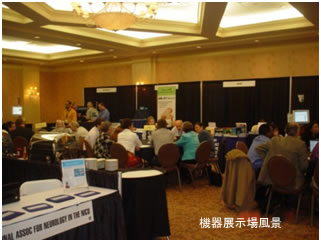 機器展示に関しては、小規模で脳機能モニタ・NIRS、体温管理装置などのメーカーが各数社づつ、計10社の展示があった。弊社の取り扱い商品としては、Care Fusion社のニコレーワンモニタが展示されていた。朝食は展示場で軽食が提供されたが、その時間帯に各分野のエキスパートの先生方がテーマごとにテーブル席を設け、フリーディスカッションできる場を設けていた。