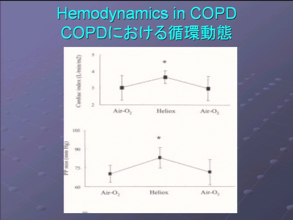 他に興味深いことに、HelioxはCOPD患者さんで循環動態を実際に改善することがあるということです。