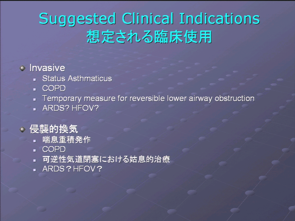 文献的に、Helioxの使用が有益なclinical indication(臨床使用)を検討してきましたが、明らかに喘息、COPD、上気道閉塞、そういった疾患を持つ非挿管患者さんに何らかの clinical indication(臨床使用)があります。