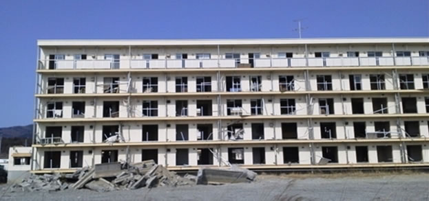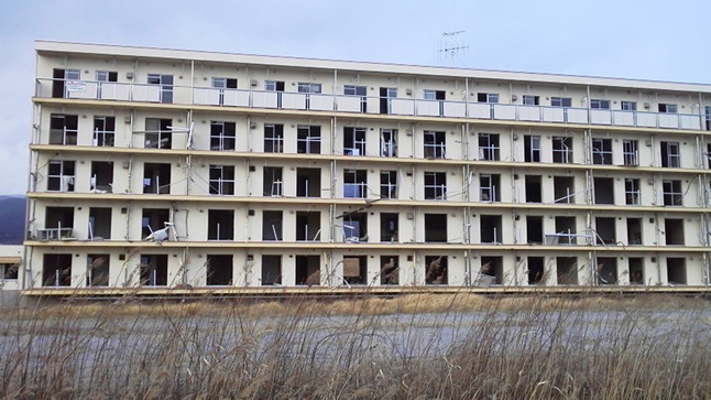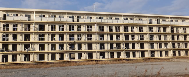 震災直後に伺った際、写真を撮った場所が有るので、定点ポイントとして、先のコンビニ、高田病院を含めて6か所決めています。残りの場所に移動しながら、写真を撮りました。最後に撮った場所は、国道沿いの5階建ての公営住宅です。2棟建っていますが、1棟は取り壊し中でした。写真を撮った建物自体は、まだ手つかずでしたが、来年伺う際には、取り壊されており、無くなっているものと思われます。今は、僅かに残っている建物が完全に無くなっているものでしょう。