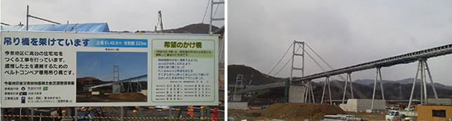 復旧と共に僅かではありますが、復興も感じる部分も有ります。高台移転先と沿岸部を結ぶ工事用の大規模なベルトコンベアーが設置されていました。土砂の運搬等に使われている様ですが、これを設置する事で工事の期間が大幅に短縮される事でしょう。
