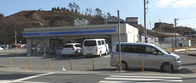 その交差点を右折し、陸前高田に向かったところ、直ぐにローソンが見えてきました。