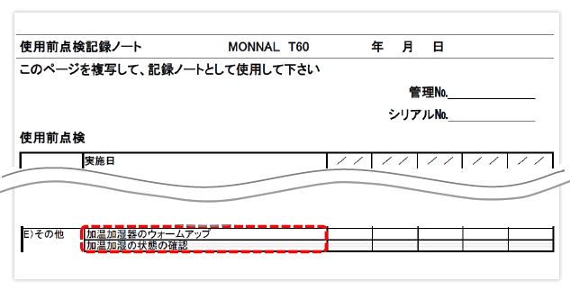 弊社取り扱いの人工呼吸器の取扱説明書には、ユーザーによる点検の手順とチェックリストを記載していますので、日常の管理にお役立て下さい。