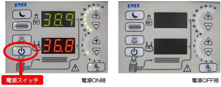 電源が入っている場合は電源スイッチのインジケータが点灯。