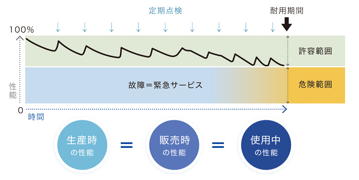 医療機器の性能は、使用期間・稼働時間が長くなるほど劣化していきます。品質や性能を維持し、常に変わらない治療効果を得るためには定期的な保守点検が必要不可欠です。